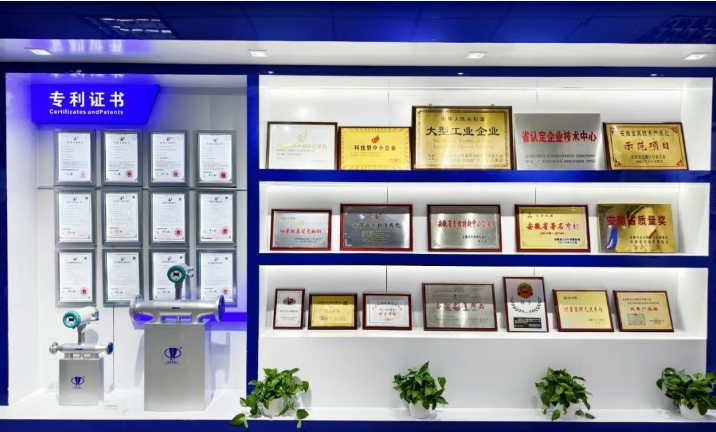 榮譽(yù)墻上,金光閃閃的獎(jiǎng)牌和專利證書,無聲地訴說著合肥精大儀表在流量計(jì)領(lǐng)域的卓越成就。“大型工業(yè)企業(yè)”、“安徽省著名商標(biāo)”、“安徽省質(zhì)量獎(jiǎng)”、“安徽省專精特新企業(yè)”、“安徽省專利優(yōu)秀獎(jiǎng)”、等一項(xiàng)項(xiàng)殊榮,是對(duì)合肥精大儀表始終堅(jiān)持科技創(chuàng)新、追求卓越品質(zhì)的最佳褒獎(jiǎng)。數(shù)十項(xiàng)國家專利,更是彰顯了企業(yè)在核心技術(shù)領(lǐng)域的強(qiáng)大實(shí)力。